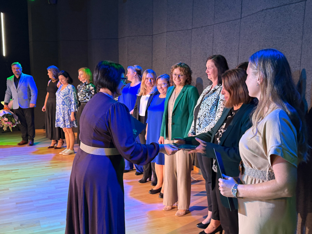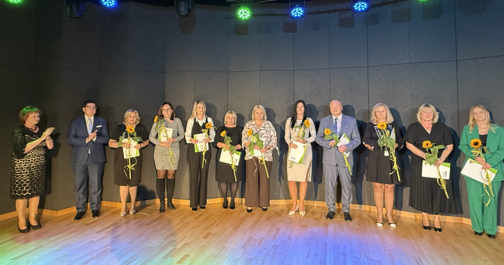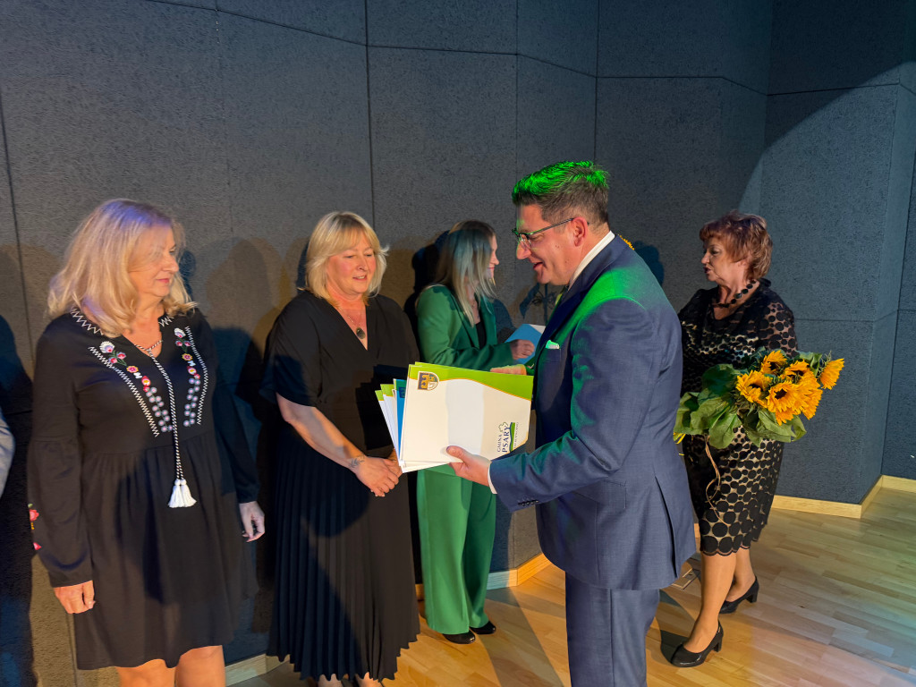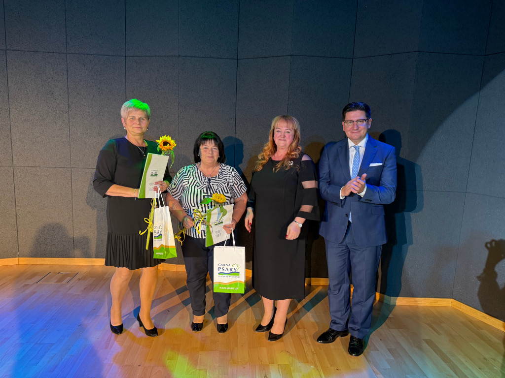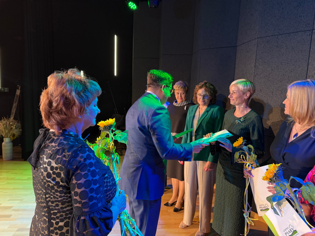 Następnie, zgodnie z coroczną tradycją, wręczone zostały nagrody Wójta Gminy Psary. W gronie wyróżnionych znalazły się dyrektorki gminnych placówek oświatowych: Beata Polaniecka ze Szkoły Podstawowej w Gródkowie, Joanna Marcinkowska ze Szkoły Podstawowej w Dąbiu, Dorota Pronobis-Kościńska z Zespołu Szkolno-Przedszkolnego w Strzyżowicach, Małgorzata Barańska z Zespołu Szkolno-Przedszkolnego w Sarnowie, Agnieszka Barańska-Białas z Zespołu Szkolno-Przedszkolnego w Psarach oraz Agata Wilczyńska z Gminnego Żłobka w Psarach. Podziękowania otrzymali również wicedyrektorzy szkół i zespołów szkolno-przedszkolnych za pracę w roku szkolnym 2024/2025: Dorota Konieczny, Kinga Ćwintal, Aleksandra Janicka, Agnieszka Słowikowska i Dorota Haczyk.