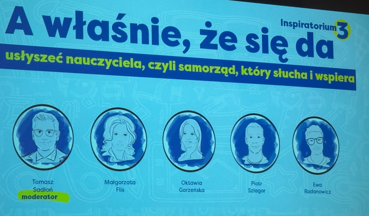 Jednym z głównych punktów konferencji był panel „Nauczyciel a samorząd”, w którym rolę moderatora pełnił wójt Tomasz Sadłoń. Dyskusja koncentrowała się na współpracy jednostek samorządu terytorialnego ze szkołami, modelach wspierania dyrektorów placówek oraz możliwościach wynikających z pozyskiwania środków zewnętrznych na rozwój edukacji.