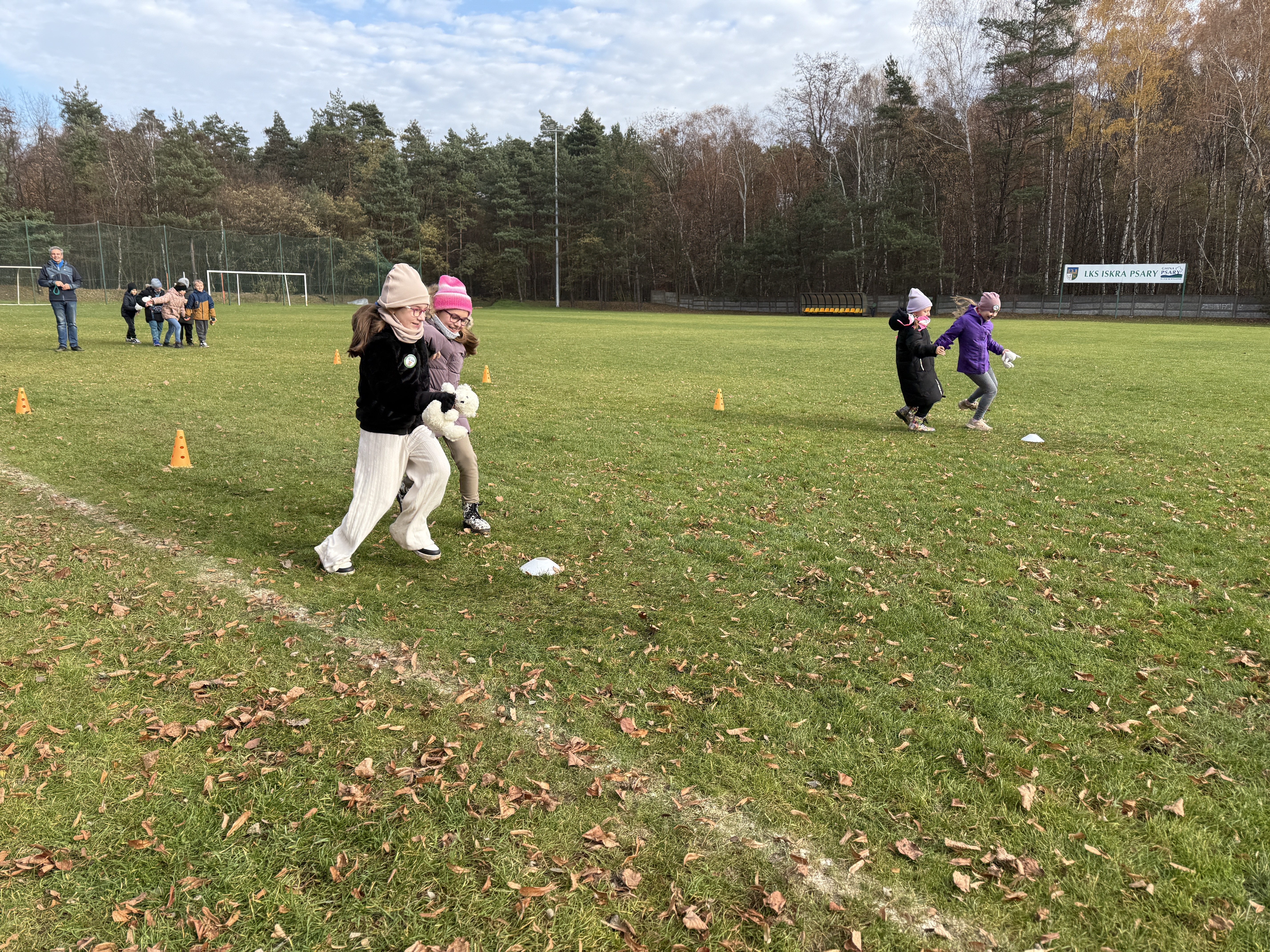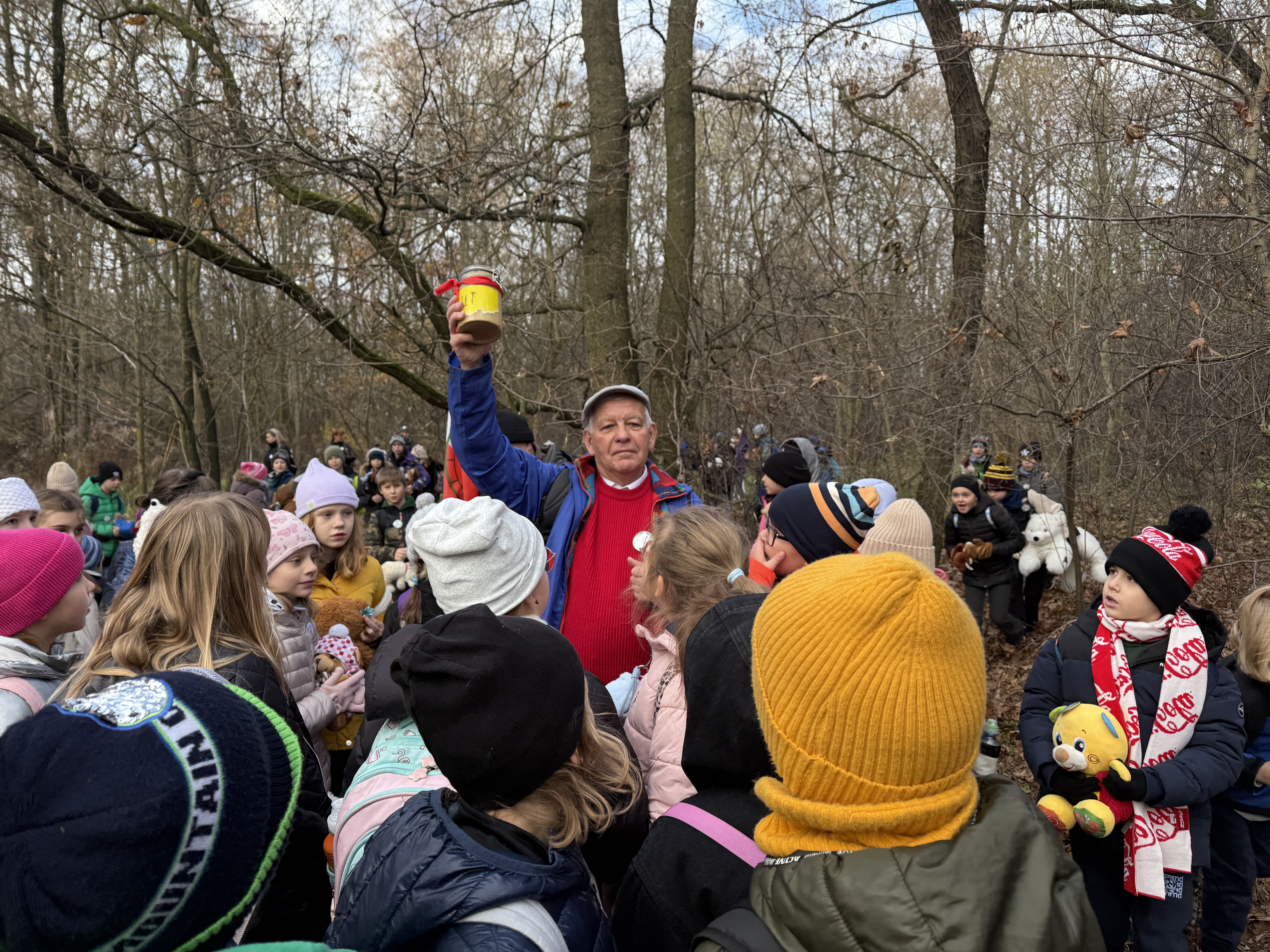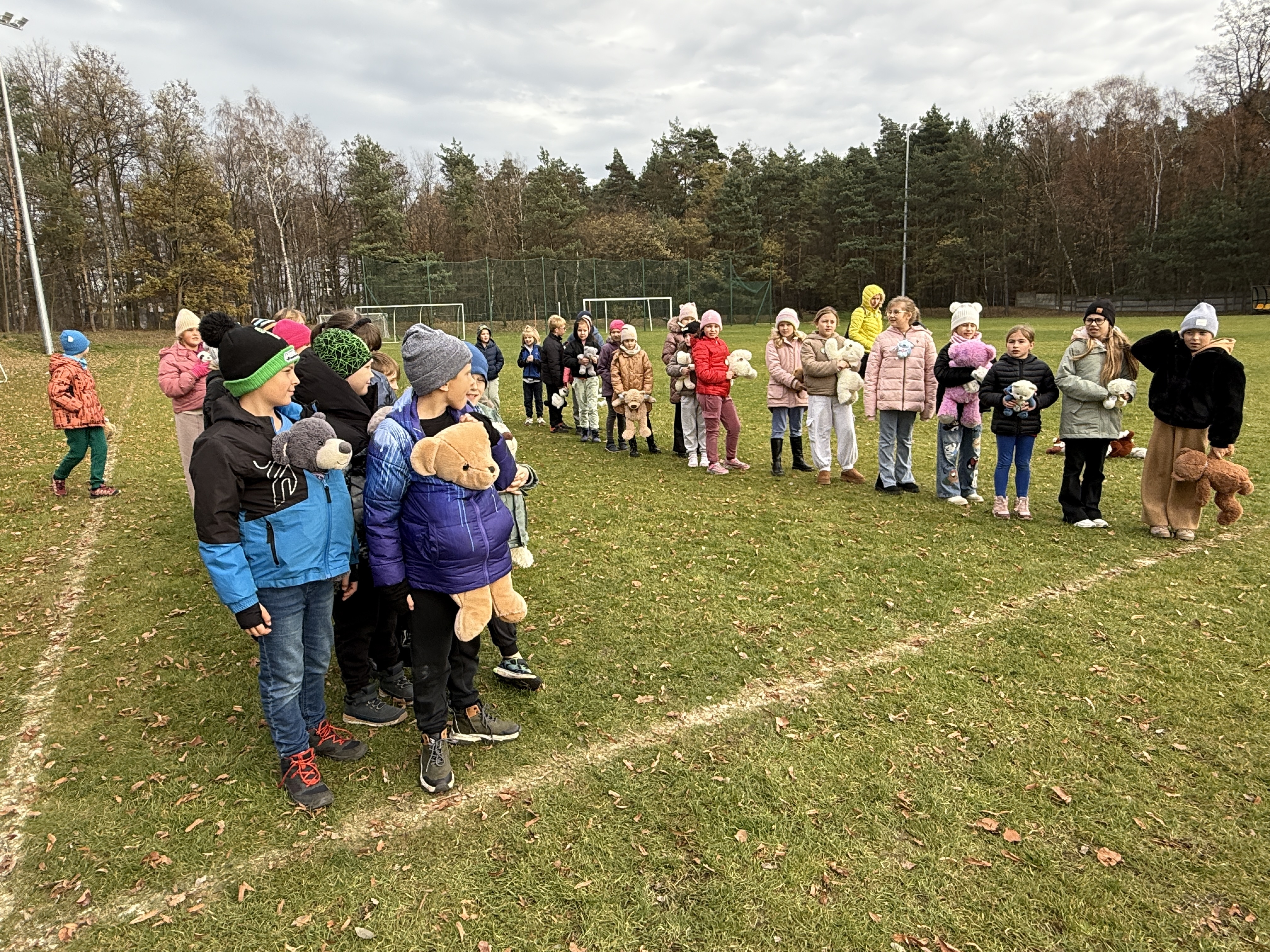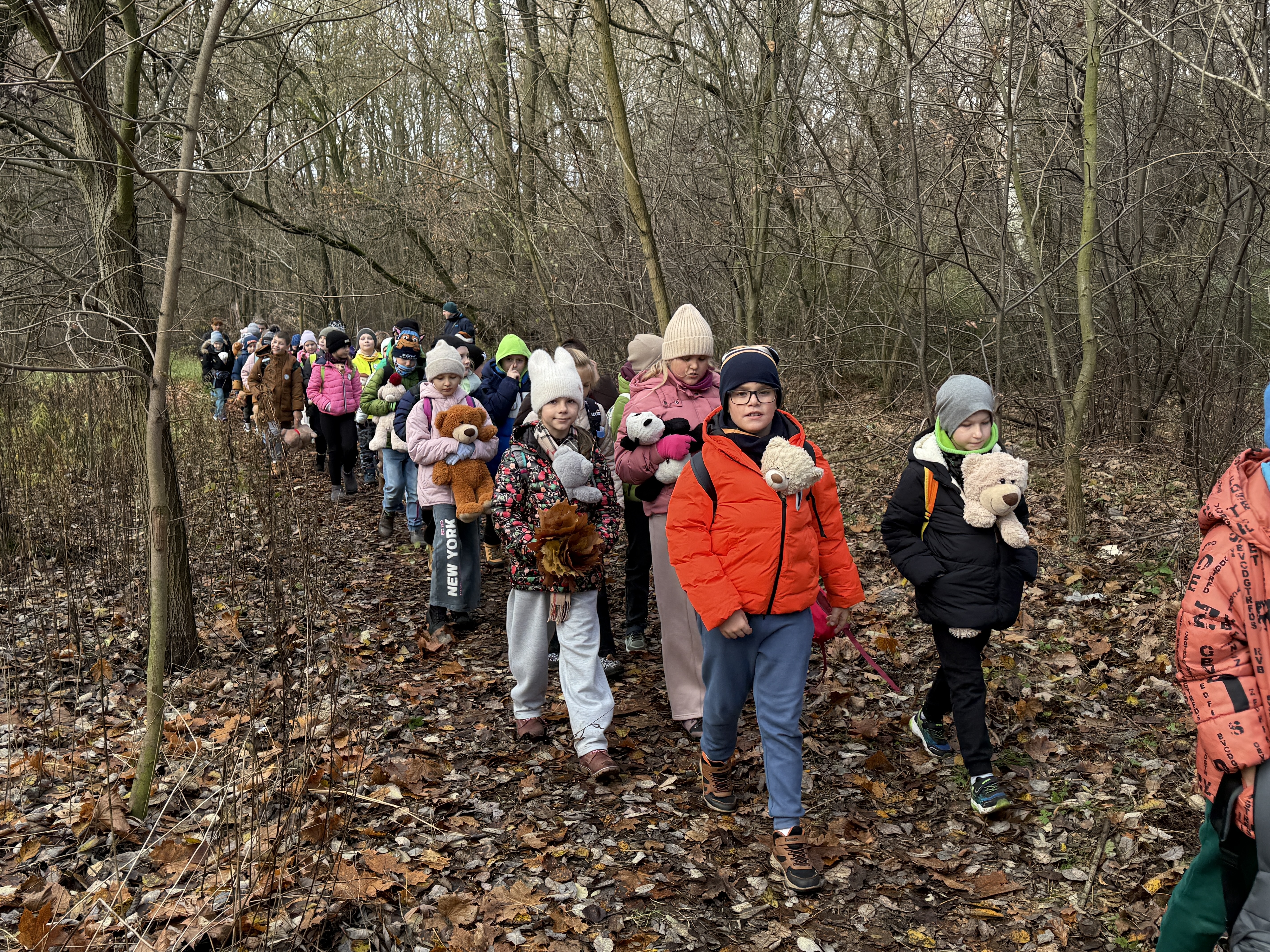 Dzieci wyruszyły na wędrówkę ścieżkami Parku Żurawiniec w poszukiwaniu ukrytego przez misia słoika prawdziwego miodu. Kolejnym punktem programu była sportowa rywalizacja w „biegu z misiem”, a po niej na uczestników czekał słodki poczęstunek. Miłym akcentem złazu był wspólny śpiew piosenki o misiach przy akompaniamencie akordeonu pana Leopolda Surmy.