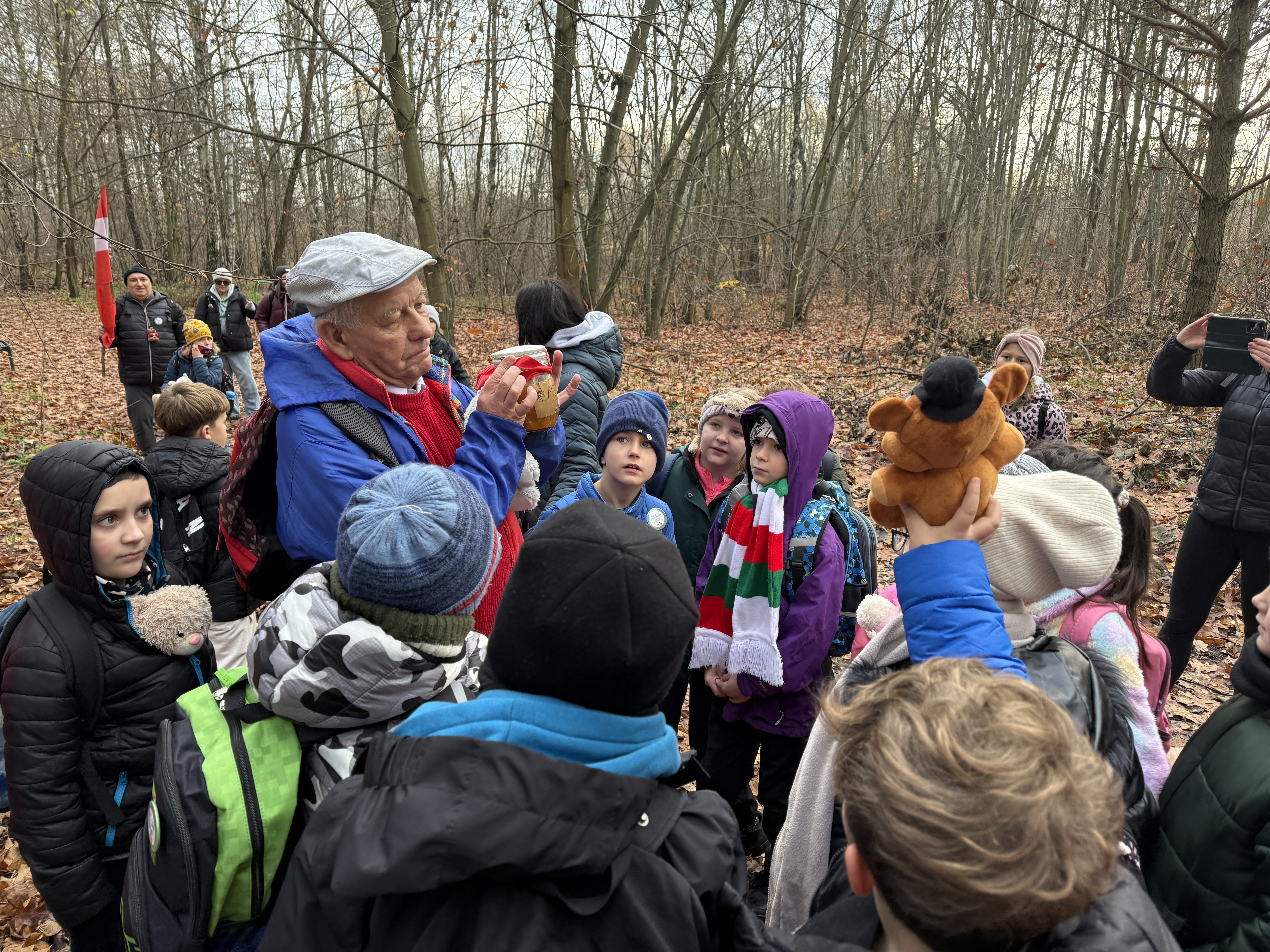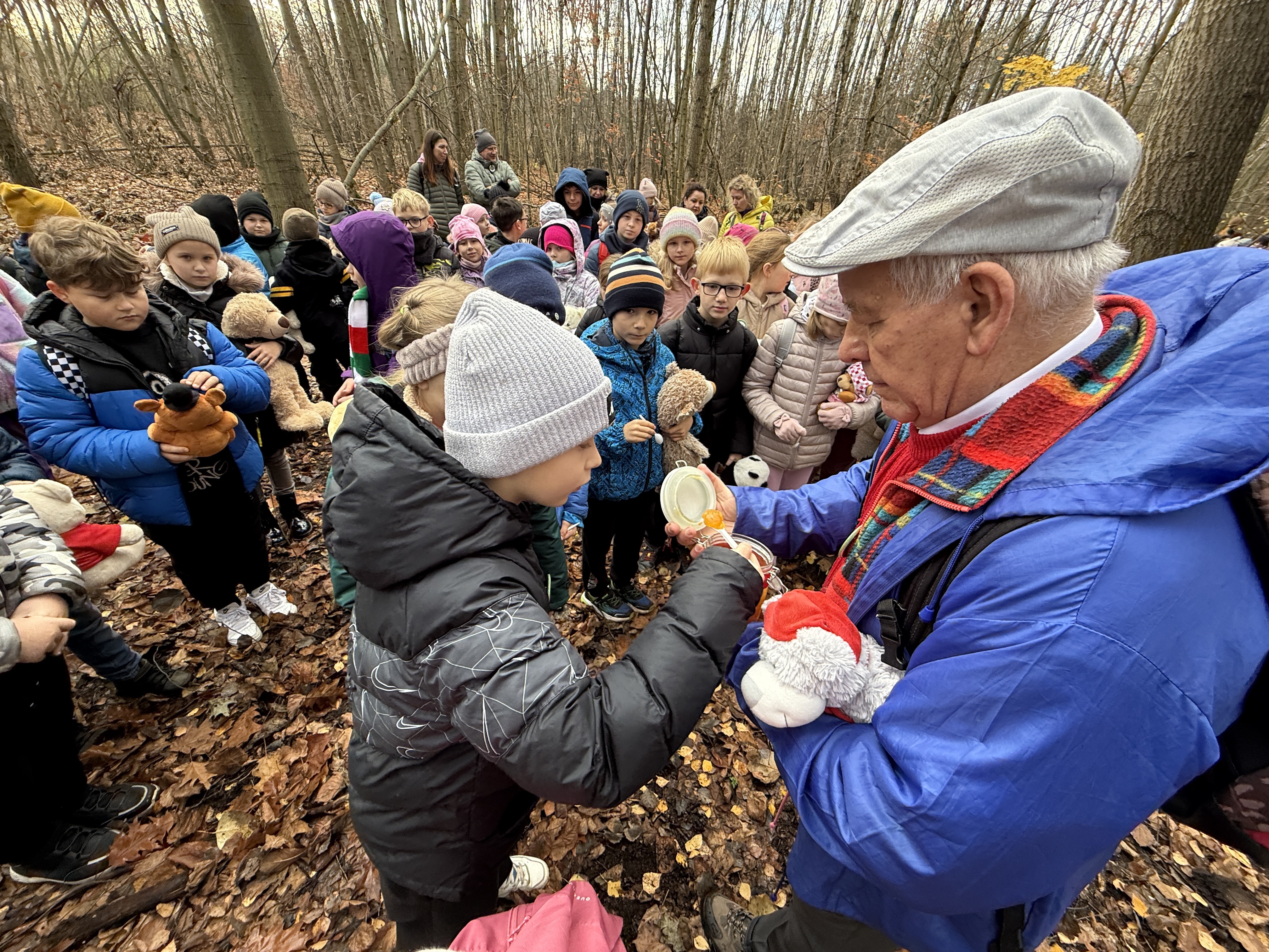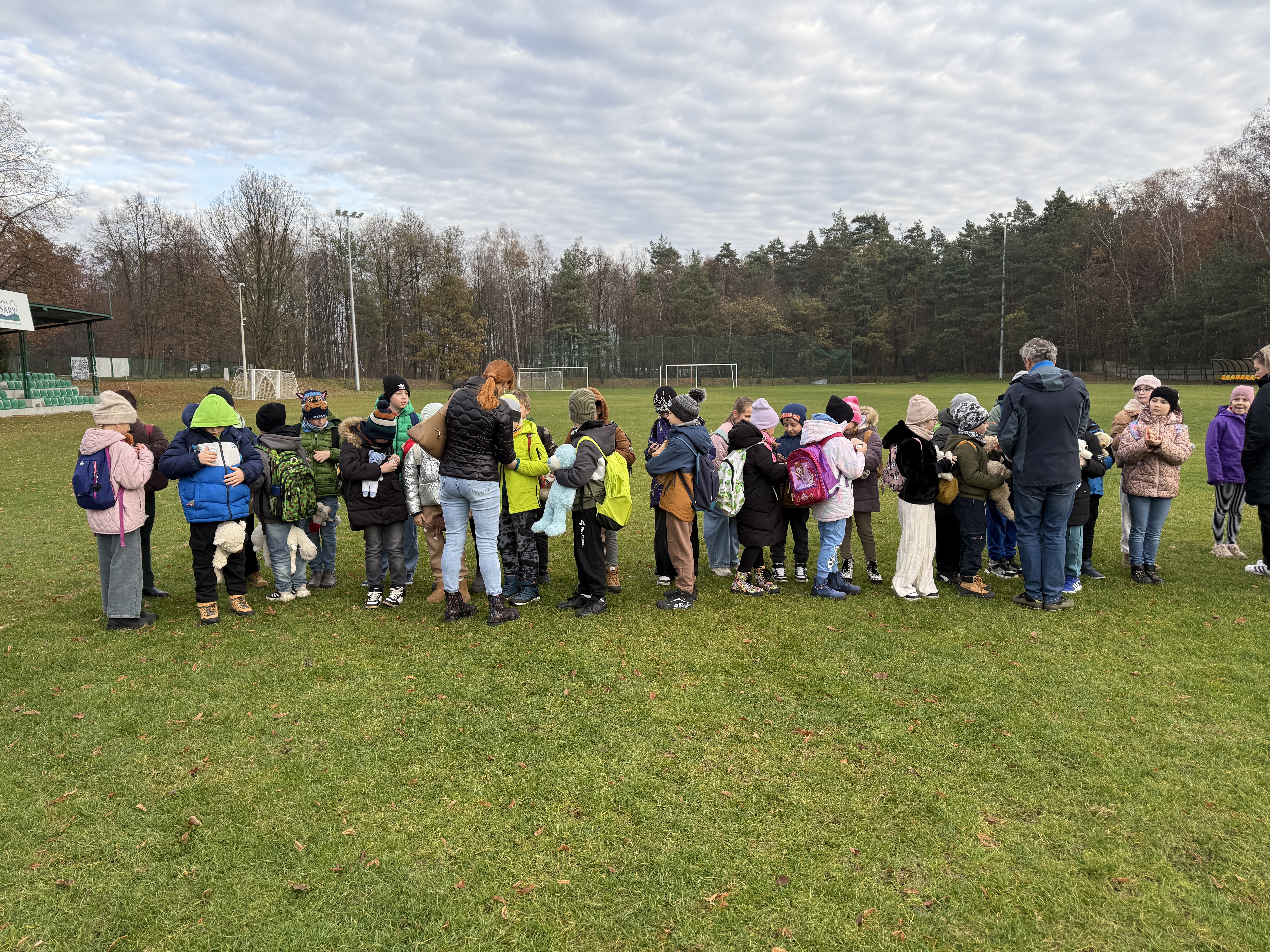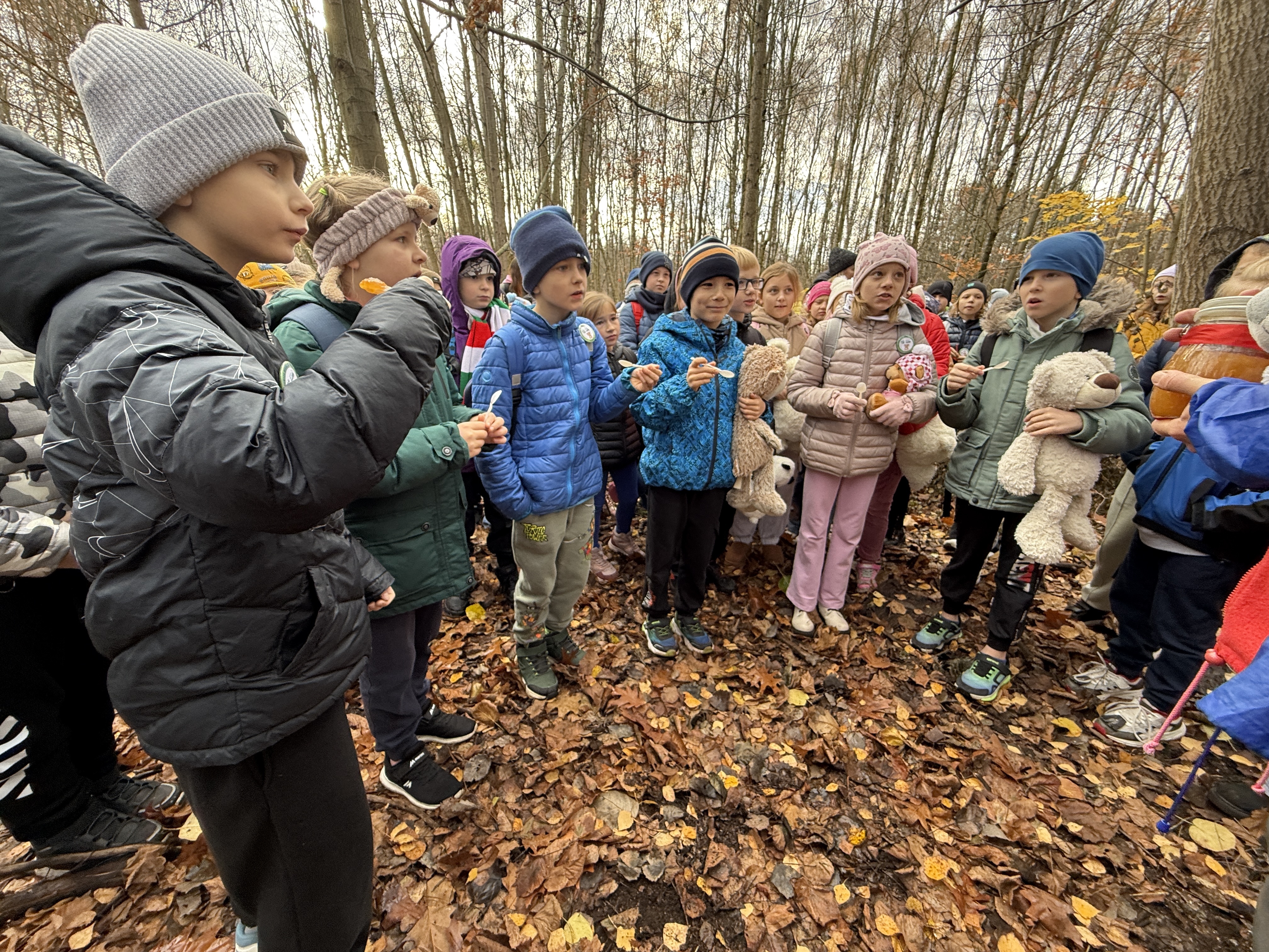 Dzieci wyruszyły na wędrówkę ścieżkami Parku Żurawiniec w poszukiwaniu ukrytego przez misia słoika prawdziwego miodu. Kolejnym punktem programu była sportowa rywalizacja w „biegu z misiem”, a po niej na uczestników czekał słodki poczęstunek. Miłym akcentem złazu był wspólny śpiew piosenki o misiach przy akompaniamencie akordeonu pana Leopolda Surmy.