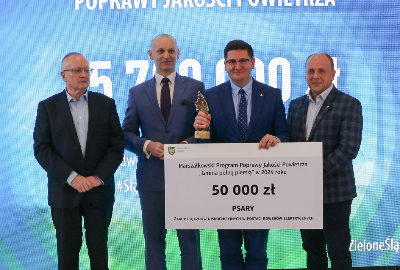 3 kwietnia w Urzędzie Marszałkowskim odbyło się podsumowanie dwóch ekologicznych konkursów – „Gmina Pełną Piersią” oraz „Inicjatywa Antysmogowa”. Gmina Psary została doceniona za szczególne osiągnięcia w działaniach na rzecz poprawy jakości powietrza i otrzymała dotacje sięgającą ponad 200 tys. zł na kolejne proekologiczne działania.