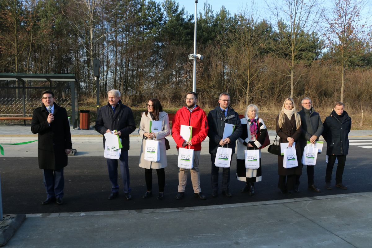 Budowa Centrum Przesiadkowego w Psarach została ukończona, a jego oficjalne uruchomienie nastąpiło 18 grudnia 2025 roku. Obiekt stał się kluczowym węzłem komunikacyjnym gminy, umożliwiając wygodne dojazdy do ościennych miejscowości, sprawne przesiadki na transport publiczny oraz korzystanie z nowoczesnej infrastruktury dla kierowców, rowerzystów i pasażerów.