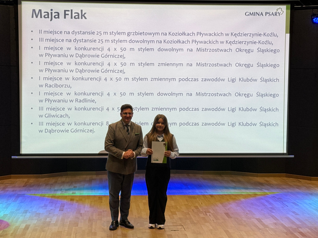 Stypendia sportowe otrzymali: Wiktoria Barańska, Maja Bernowicz, Amelia Bogacz, Maja Flak, Maksymilian Gniołczyk, Agnieszka Gruszczyńska, Marcin Gruszczyński, Pola Janik, Michał Janota, Liliana Kalika, Adrianna Korzeń, Zuzanna Kozłowska, Lena Krawiec, Emilia Krzemień, Dominika Kubień, Pola Kubień, Leon Kubień, Wiktor Majchrowski, Jakub Makuła, Amelia Mantykiewicz, Emilia Maziarz, Julia Maziarz, Kamila Maziarz, Marta Nagły, Beniamin Roś, Eryk Sielańczyk, Zuzanna Sielańczyk, Kacper Siudyka, Oliwia SIudyka, Emma Skrobek, Krzysztof Spadło, Aleksandra Spyrzyńska, Stanisław Sypion, Alicja Szopa, Julia Szopa, Natalia Tadra, Feliks Turaj, Oliwia Wilk, Emilia Wójcik, Nina Zapora, Zuzanna Zapora. Wszystkim laureatom gratulujemy i życzymy dalszych sukcesów sportowych.